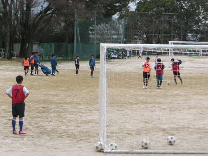 サッカー部の活動の様子です。天候に左右されず、今日も一生懸命練習に励んでいました。