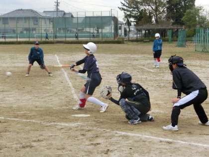 ソフトボール部の活動の様子です。卒業生とのお別れ試合が行われていました。