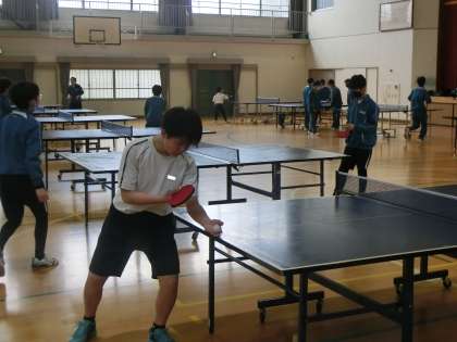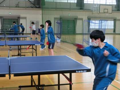 卓球部の活動の様子です。春の大会で強豪校と互角に戦えるよう、この日も一生懸命練習していました。