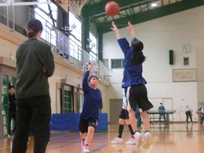 バスケットボール部の活動の様子です。春の大会に向けて一生懸命練習していました。