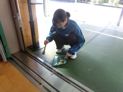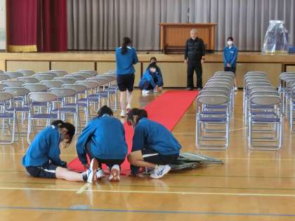 入学式・始業式の会場となる体育館のセッティング、1年生教室の掃除や飾りつけ、各学年の教室への教科書の配付など、それぞれの分担でしっかりと活動していました。