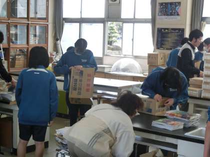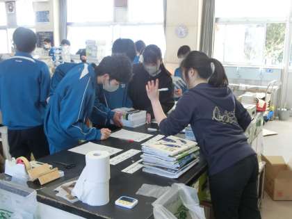 入学式・始業式の会場となる体育館のセッティング、1年生教室の掃除や飾りつけ、各学年の教室への教科書の配付など、それぞれの分担でしっかりと活動していました。
