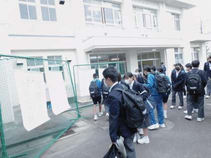 クラス・担任発表を見る生徒たち・2年生の様子です。