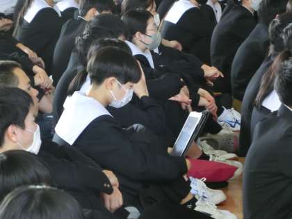 4/12 3年 進路について学ぶ 1 公開日 2024/04/12 更新日 2024/04/12 各学年から 3年生は、進路に関する集会が開かれていました。 昨年度より始まった進路に関する様々なしくみをはじめ、特色入試や推薦入試に関する部分まで、進路指導主事から丁寧に説明がありました。 しっかりと目標を定め、日々の生活や学習に取り組んでほしいと思います。