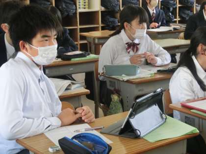 「日本ではどのような地形が見られるだろう」をテーマに、1年生で学習した内容の復習が行われていました。