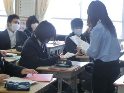 4/12 2-4 興味津々 2 公開日 2024/04/12 更新日 2024/04/12 各学年から 2年4組の英語の授業の様子です。 新しい教科担任になり、授業そのものの雰囲気も変わりました。生徒たちも興味津々といったところです。