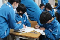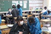 学級担任による道徳の授業で、「今の自分を見つめよう」をテーマに意見交流の活動が行われていました。