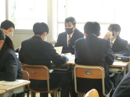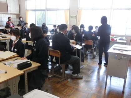 学級担任による道徳の授業で、「挨拶は言葉のスキンシップ」という資料を使って、挨拶の大切さについて考えていました。