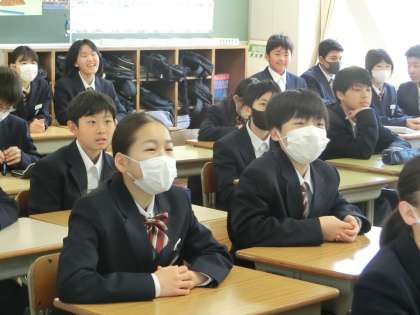 4/13 1-2 中学校の授業 2 公開日 2024/04/13 更新日 2024/04/13 各学年から 1年2組の英語の授業の様子です。 教科担任の話を一生懸命聞こうとする様子が伝わってきます。いよいよ中学校の授業が本格的に始まっていきます。