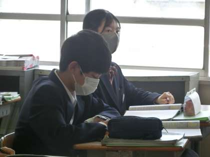 昨日の2年4組の社会・地理分野の授業の様子です。