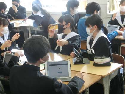 学習用タブレットを活用して、すごろくレクに取り組んでいました。