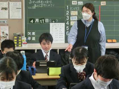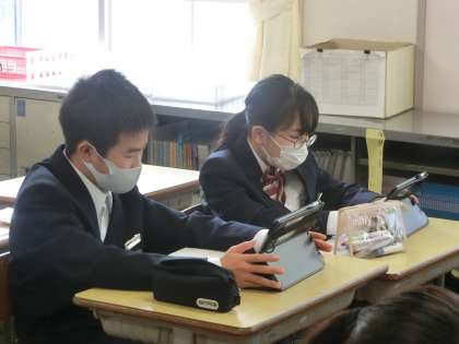 学習用タブレットのアプリを使って、ネットリテラシーについて学んでいました。