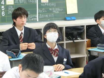 昨日の1年4組の英語の授業の様子です。 アルファベットの正しい書き方を学んでいました。