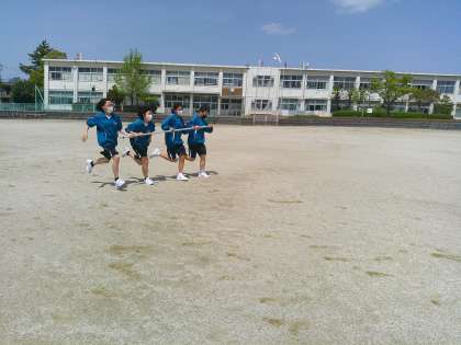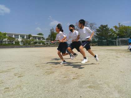 笑顔いっぱいで体育祭種目練習に取り組んでいる様子が印象的でした。