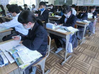 4/18 2-1 日本の「今」を学ぶ 2 公開日 2024/04/18 更新日 2024/04/18 各学年から 昨日の2年1組の社会・地理分野の授業の様子です。 日本の平地の学習で、「人工海岸の広がり・自然海岸の減少」について学んでいました。