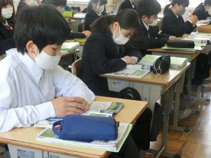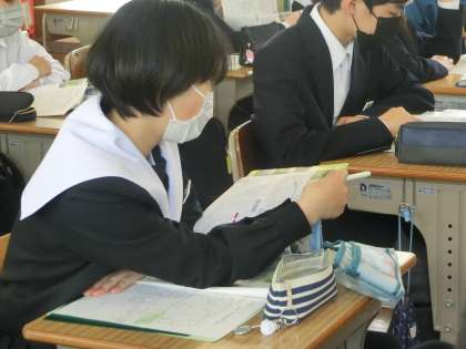 昨日の2年1組の社会・地理分野の授業の様子です。