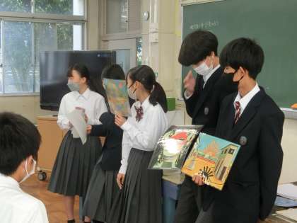 4/18 2-5 オリジナルストーリーを発表 2 公開日 2024/04/18 更新日 2024/04/18 各学年から 昨日の2年5組の美術の授業の様子です。 「オリジナルストーリーを考えよう」をテーマに、有名な美術作品を題材に考えていました。作品の特徴を見つけ出し、想像力を膨らませる学習です。