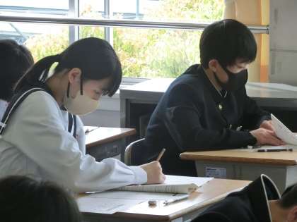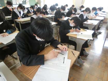 写真は、3年4組の生徒たちの様子です。