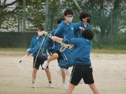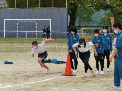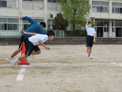 新体力テストの種目である50m走のタイム計測と長縄とびの練習に取り組んでいました。体育祭に向けての準備や練習に一生懸命です。
