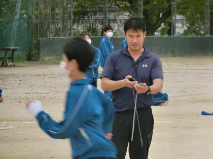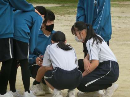 新体力テストの種目である50m走のタイム計測と長縄とびの練習に取り組んでいました。体育祭に向けての準備や練習に一生懸命です。