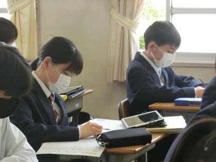 金曜日の2年3組の国語の授業の様子です。 少年の主張作文もいよいよ完成間近です。