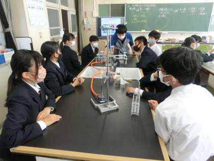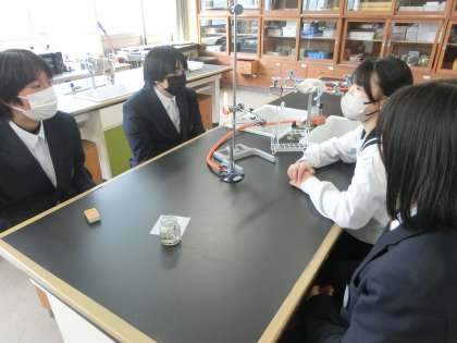 化学反応を確認するため実験に取り組んでいました。