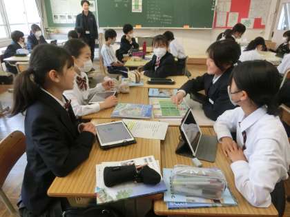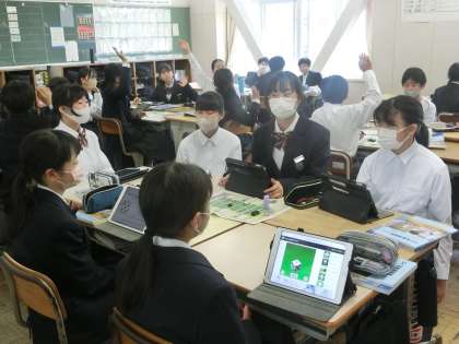 技術の学習で意識したい事柄を確認したあと、学習用タブレットを活用して、すごろくレクに取り組んでいました。