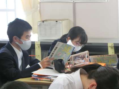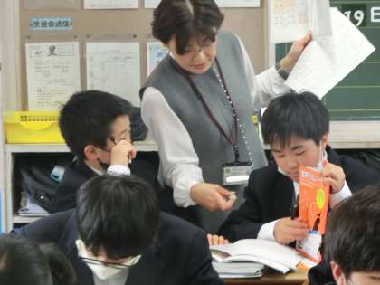 国語の授業の進め方、テキストやノートの使い方を確認していました。