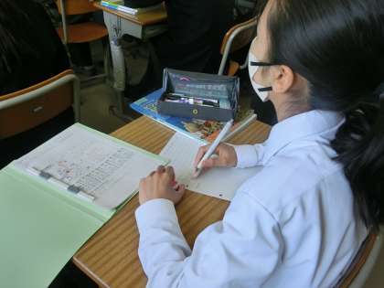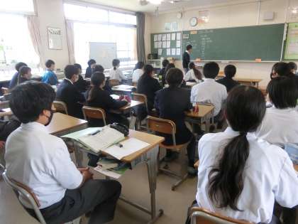 金曜日の2年5組の社会・地理分野の授業の様子です。