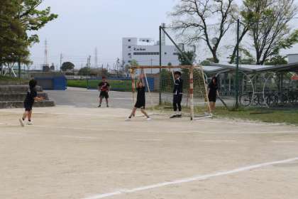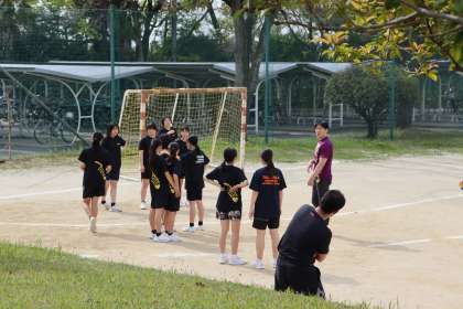 写真は、女子ハンドボール部の活動の様子です。