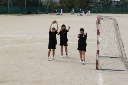 写真は、女子ハンドボール部の活動の様子です。