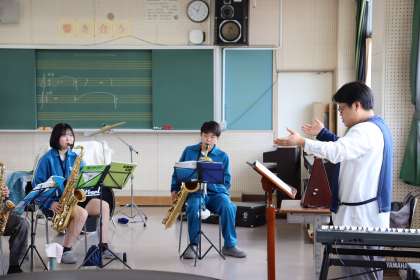 地域指導者の丁寧で熱心な指導のもと、全員が息を合わせた力強い演奏を意識して練習していました。
