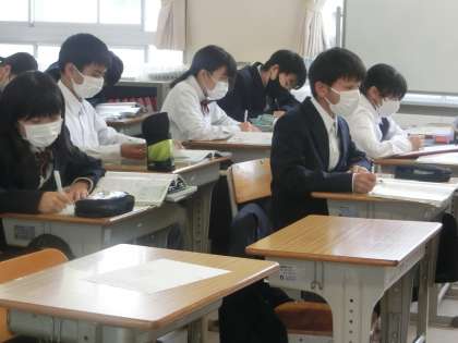 「日本の人口構成や分布の特色を知り、問題点を考えよう」をテーマに学習が進められていました。