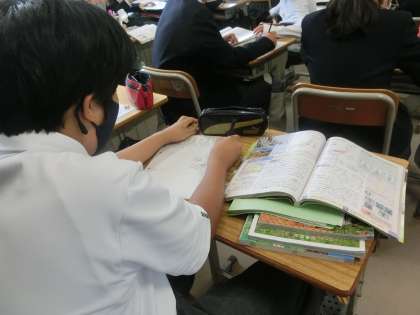 2年5組の社会・地理分野の授業の様子です。
