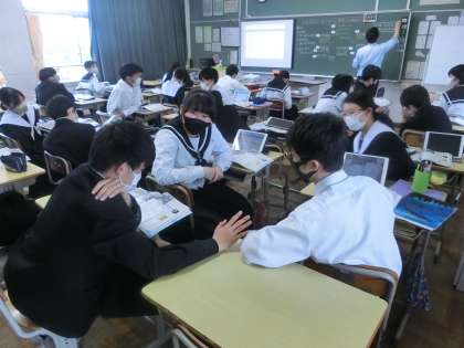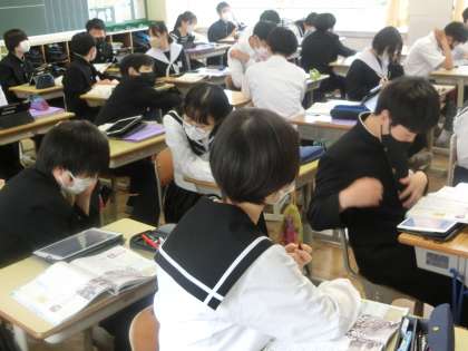 昨日の3年5組の社会・歴史分野の授業の様子です。