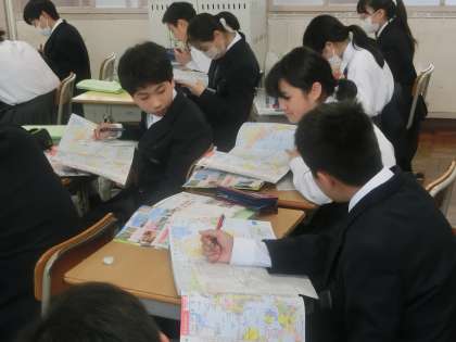 「世界にはどのような国があるか、地図帳を使って調べてみよう」をテーマに学習が進められていました。