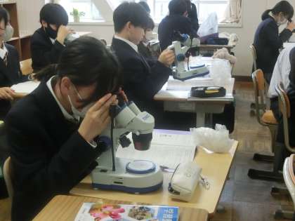 双眼実体顕微鏡の使い方を学びながら、実際にセイヨウタンポポを観察していました。