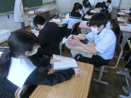 井上ひさしさんの「握手」を題材に、文章に表現されている事柄から登場人物の心情に迫っていました。