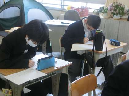 4/28 1&2 一生懸命はカッコいい 2 公開日 2024/04/28 更新日 2024/04/28 各学年から 先週、お伝え出来なかった生徒の活動の様子をお届けします。 写真は、1,2学級の数学の授業の様子です。 各自の課題に懸命に取り組んでいました。