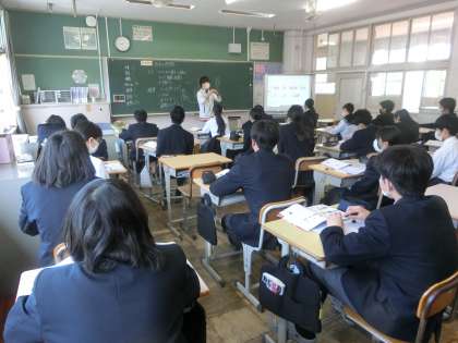 写真は、2年4組の理科の授業の様子です。