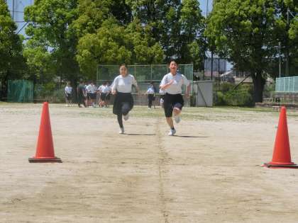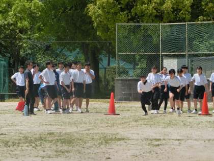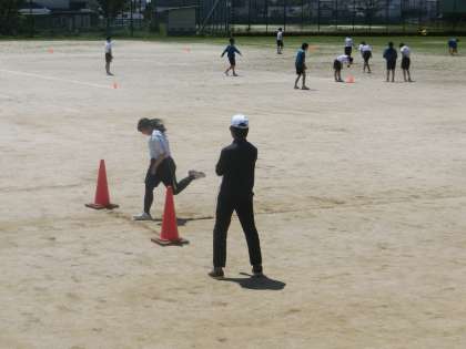 体力テストの種目(50m走・ボール投げ)の計測が行われていました。