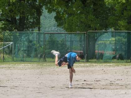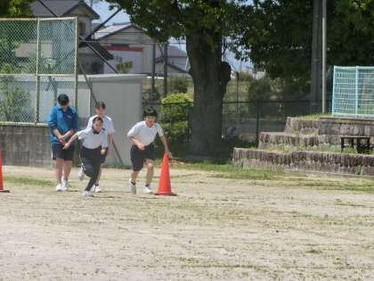 体力テストの種目(50m走・ボール投げ)の計測が行われていました。