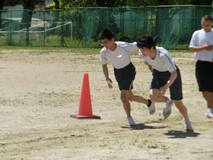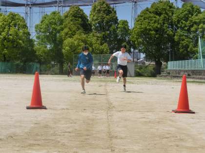 体力テストの種目(50m走・ボール投げ)の計測が行われていました。