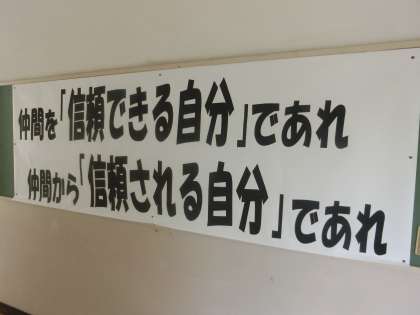 1年生の学年掲示板に貼られていました。 仲間も、自分も信頼できる存在になってほしいと思います。