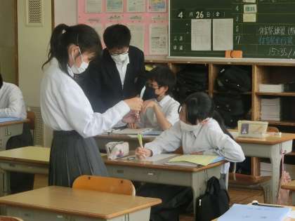 4/29 2-2 仲間の力も借りながら… 2 公開日 2024/04/29 更新日 2024/04/29 各学年から 先週、お伝え出来なかった生徒の活動の様子をお届けします。 写真は、2年2組の数学の授業の様子です。 「文字式の乗法の計算」について学んでいました。たくさんの演習問題を仲間と相談しながら進めていました。