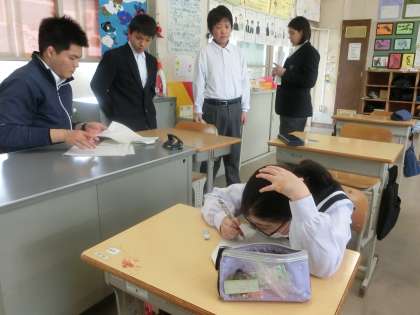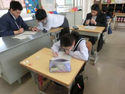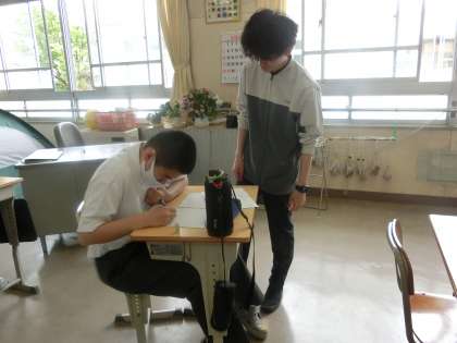 各自の課題に取り組んでいました。問題を解き終わった生徒からどんどん教科担任のところにやって来ます。