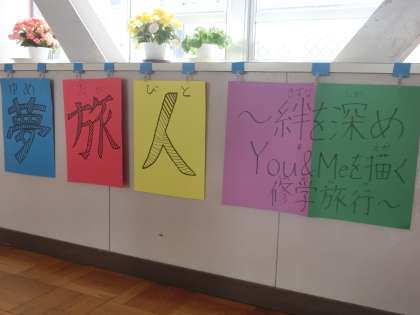 6月に予定されている修学旅行のテーマが、昇降口付近に掲示されています。準備をしっかり進め、自分の将来の『夢』を追う『旅人』になってほしいと思います。