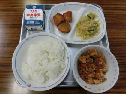 家常豆腐(ジャーチャンドウフ)、華風あえ、大学いも、ごはん、牛乳 でした。