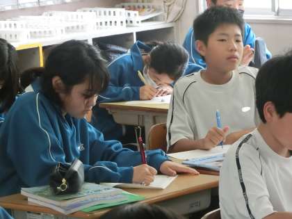 「グリーンカーテンの成功に向けて」と題して、土づくりについて学んでいました。教室ででの活動が始まりました。