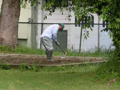 今年も特別支援学級の生徒たちがたくさんの野菜を育てようとしている学級菜園。先日の生徒たちの草取りの様子を見て、校内整備員さんが栄養いっぱいの土づくり・畝づくりを行ってくれていました。
